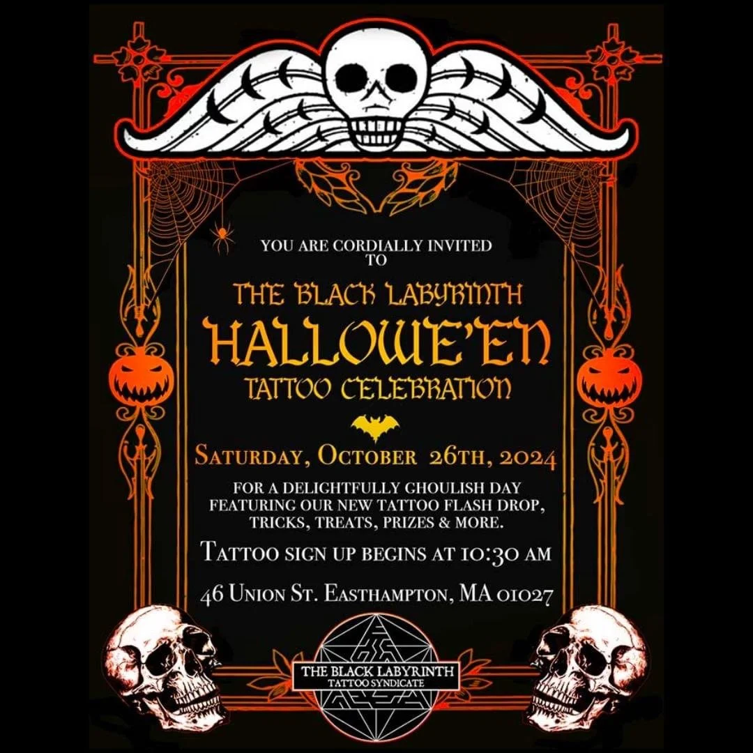 Upcoming Events! Nov 16 Flash Event! Saturday, November 16, 2024 11:00 AM 7:15 PM Hollows Tattoo Studio (map) Google Calendar ICS !TATTOO FLASH EVENT!Birth Flower Themed! View Event → Oct 26 Halloween Flash Event Saturday, October 26, 2024 11:00 AM 7:00 PM Google Calendar ICS (EASTHAMPTON, MA)COME OUT FOR A HALLOWEEN BASH!TATTOO FLASH EVENT HALLOWEEN THEMED FIRST COME FIRST SERVESTARTS 11AM-7PM 46 UNION ST, EASTHAMPTON MA View Event → Follow my Journey.